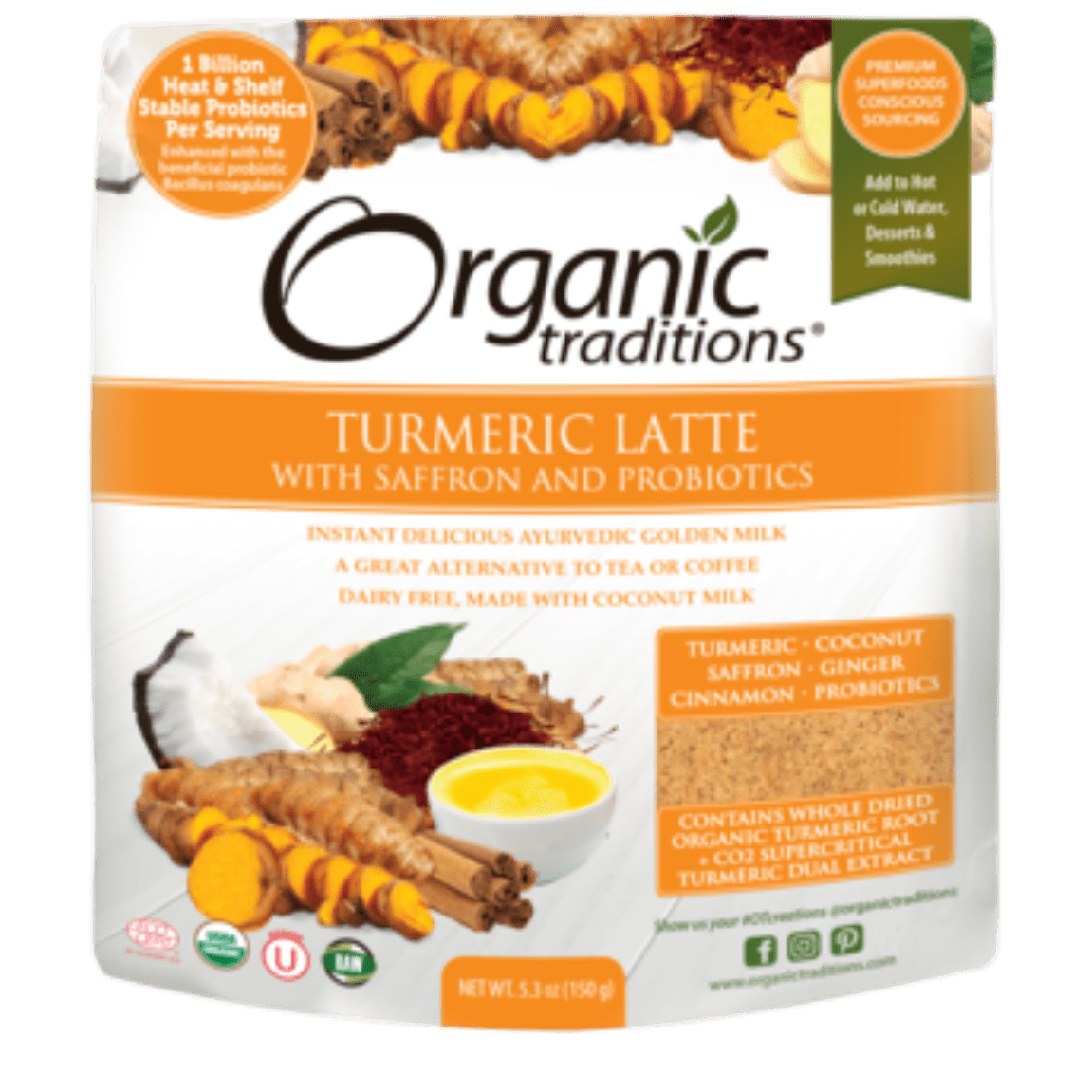 Inspired by the classic Ayurvedic Golden Milk, our Turmeric Latte with Probiotics is a blend of whole, dried turmeric root, supercritical dual extract turmeric, saffron and dual extract ginger and cinnamon. Lightly sweetened with coconut palm sugar with a coconut milk powder base, enjoy an instant turmeric latte by blending together 1 tbsp of our latte mix with 6oz of hot water.
