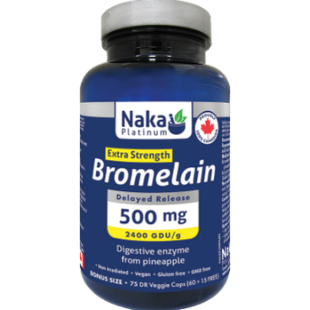 Naka Platinum Bromelain 500mg capsules contain the protein-forming enzyme Bromelain, extracted from pineapple stems.