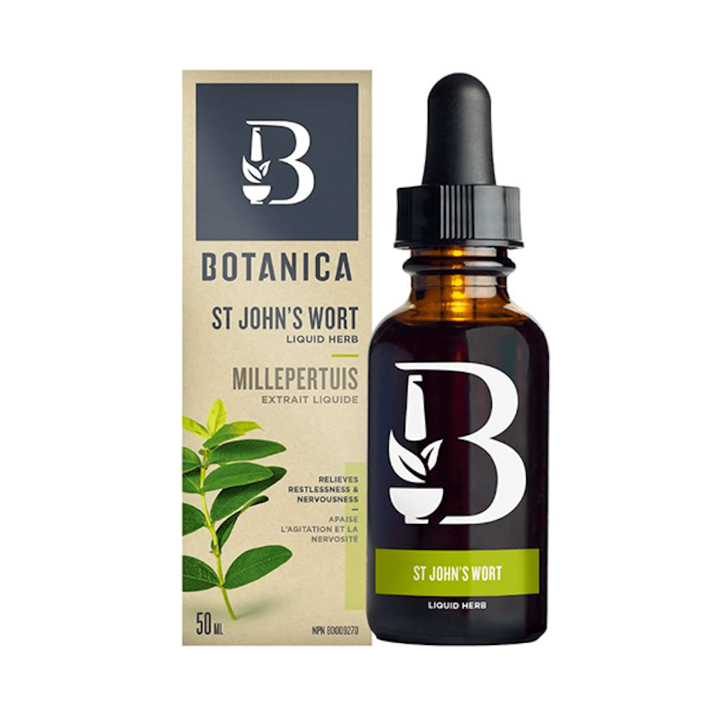 Botanica's Certified Organic St. John's Wort Liquid Herb is a concentrated extract that aims to help promote emotional wellness and relieve feelings of restlessness and nervousness. Here are some essential details about this product: