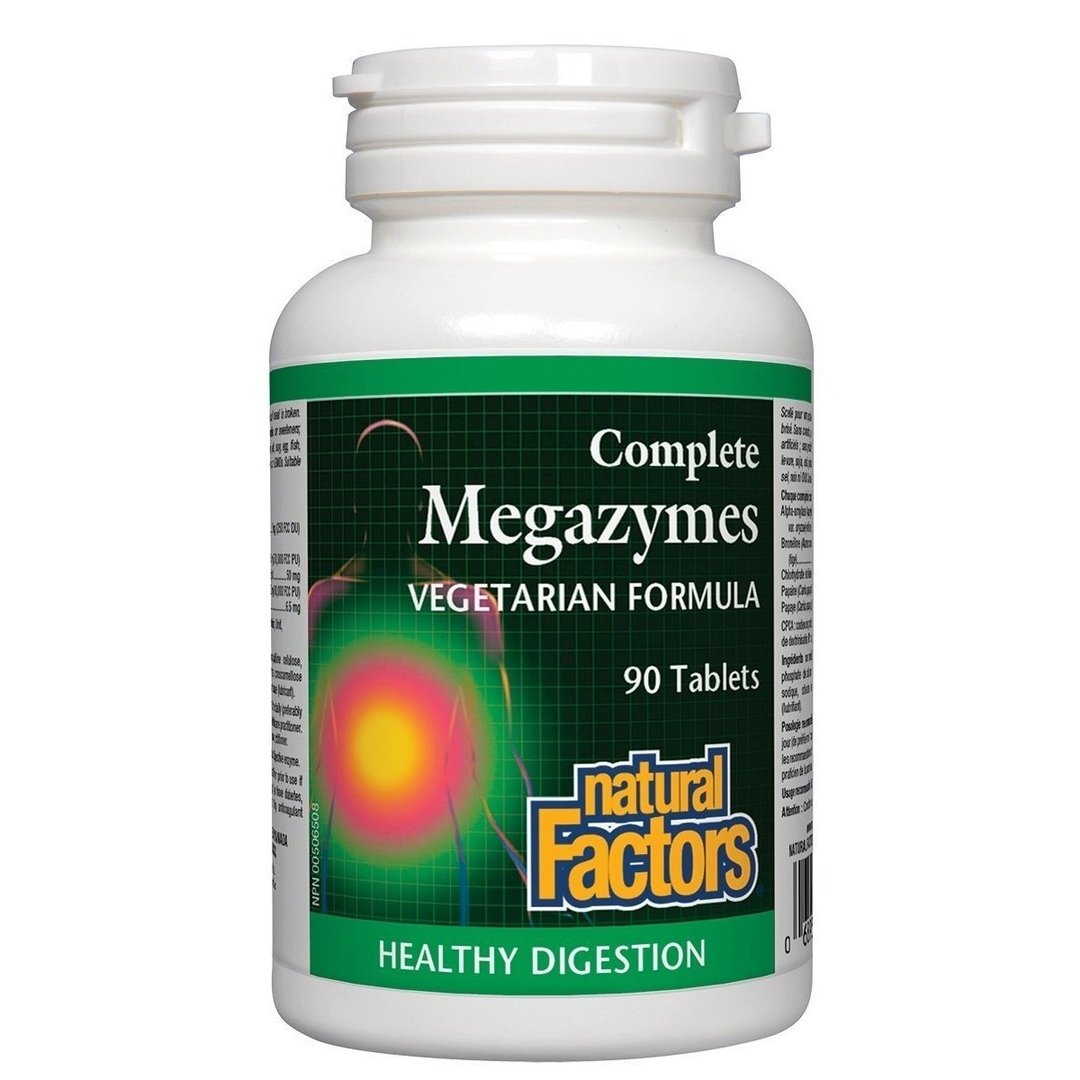 Natural Factors Complete Megazymes is a comprehensive digestive enzyme formula designed to assist and enhance healthy digestion. This vegetarian-friendly, non-GMO formula features natural proteases, amylase, lipase, bromelain, and papain to help the body break down proteins, carbohydrates, and fats, to support healthy digestion and improve nutrient absorption.