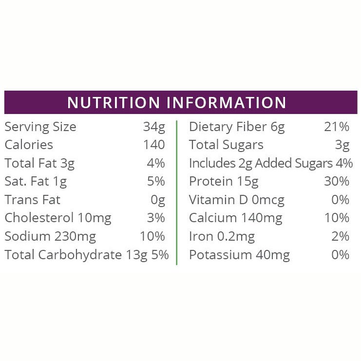 Inulin, Milk Protein Isolate, Soy Protein Isolate, Whey Protein Concentrate, Potato Flakes, Potato Starch, Soy Flour, Calcium Carbonate, Rice Flour, Semi-Sweet Chocolate Drops with Vanilla, Natural Flavors, Olive Pomace Oil, Egg Whites (Dried), Sodium Bicarbonate, Salt, Xanthan Gum, Sucralose, Soy Lecithin.