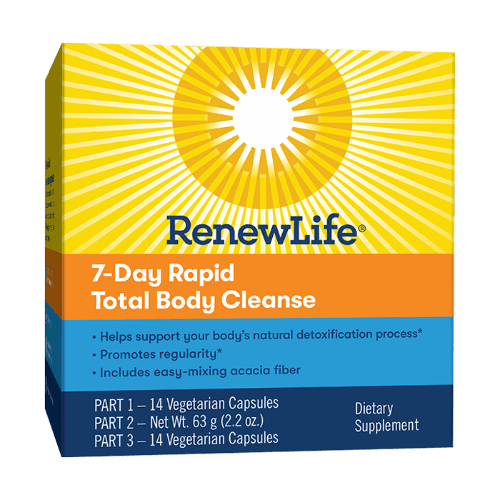 Rapid Cleanse Rapid Cleanse stimulates the body’s 7 channels of elimination to enhance the normal process of detoxification (processing the body’s toxins, free radicals, and pollutants) and cleansing (eliminating these substances through the bowel, urinary tract, and skin). Rapid Cleanse is a 3 part cleanse. Part 1 and 3 are a combination of herbs, minerals, and amino acids contained in vegetable capsules. Part 2 is a powdered fibre supplement from acacia fibre. Rapid Cleanse Part 1 works by directly stimulating the organs, thereby enhancing the detoxification process of the body. It contains herbs, such as milk thistle, dandelion, and turmeric, which stimulate the liver’s production of bile. The liver transfers toxins into the bile, which is then carried into the small intestine where it is absorbed by fibre and brought to the colon for elimination. Part 1 also contains the diuretic herb artichoke. This allows the body to release more water from the blood, thereby increasing the volume of urine excreted. Rapid Cleanse Part 1 also contains herbs that stimulate elimination of toxins through the skin and the lungs, as well as cleansing the blood and stimulating the lymphatic system. Rapid Cleanse Part 2 is a fibre supplement containing acacia fibre. Normally, Renew Life recommends a balanced blend of soluble to insoluble fibre (FibreSMART). However, due to the significant impact this product has on the liver, it is important to supplement with a fully soluble fibre. Acacia fibre is a soluble fibre that absorbs toxins for removal from the body. This is extremely important as unabsorbed toxins can be recirculated back into the body. Rapid Cleanse Part 3 enhances elimination from the colon. It contains magnesium hydroxide which helps to regulate water into the bowel. Most people become constipated because they are dehydrated. When the colon is fully hydrated, elimination can occur more easily, without the need of harsh laxatives. Part 3 also contains the herbs cape aloe, rhubarb, and triphala which stimulate peristalsis (contraction of the colon). Once the colon has been hydrated and peristalsis has been properly stimulated, elimination can be achieved at a normal level (2-3 times per day). It is recommended that you cleanse 2-4 times per year as we live in a toxic world with chemicals from factories, trucks, and pesticides. Since we are constantly inhaling and ingesting toxins, it is better to remove them regularly, rather than to have them build up and lead to health problems. Directions for use Adults: Take 2 capsules of Rapid Cleanse 1 in the morning with a meal providing protein. Take 1 level scoop of Rapid Cleanse 2 mixed in water or juice in the morning and in the evening. Take 2 capsules of Rapid Cleanse 3 in the evening with 250ml (1 full glass) of water on an empty stomach (allow 6-12 hours for laxative effect to occur). Do not use within 2 hours of other medicines. Drink plenty of water while using this product. 7 day cleanses are effective and are useful if you are struggling to find the time for a longer program. However, to achieve the full benefits of cleansing and detoxification, it is recommended you perform a 30 day cleanse 2 to 4 times per year. Ingredients Rapid Cleanse 1 Each capsule contains Milk Thistle Seed (Silybum marianum) – 50% Silymarin*200mg Red Clover Flower (Trifolium pratense)150mg Artichoke Leaf 4:1 Extract(200mg) (Cynara scolymus)50mg Burdock Root 5:1 Extract (250mg) (Arctium lappa)50mg L-Glutathione50mg N-Acetyl-L-Cysteine50mg Stinging Nettle, 5:1 Extract (250mg) (Urtica dioica) herb top 5:1 Extract (250mg)50mg Ashwagandha Root 5:1 Extract(125mg) (Withania somnifera)25mg Dandelion Root 4:1 Extract (100mg) (Taraxacum officinale)25mg Mullein Leaf (Vebascum thapsus)25mg Turmeric Root Rhizome (Curcuma longa) 4:1 Extract (100mg)25mg *50% Silymarin via HPLC = 80% Silymarin via UV Non-medicinal Ingredients: Vegetable capsule (Hypromellose, water) Rapid Cleanse 2 Each serving (5.0g) contains Acacia Gum (Acacia Senegal)5.0g Rapid Cleanse 3 Each capsule contains Magnesium (from magnesium hydroxide)125mg Chinese Rhubarb Root (Rheum palmatum)175mg Cape Aloe Leaf Latex (Aloe ferox)125mg Slippery Elm Bark (Ulmus rubra)25mg Marshmallow Root (Althaea officinalis)25mg Fennel Seed (Foeniculum vulgare subsp vulgare var. vulgare)25mg Ginger Root, Rhizome (Zingiber officinale)25mg Triphala Indian Gooseberry Fruit (Emblica officinalis)8.33mg Bellerica Myrobalan Fruit (Terminalia bellirica)8.33mg Chebulic myrobalan Fruit (Terminalia chebula)8.33mg Non-medicinal Ingredients: Vegetable capsule (Hypromellose, water) Contains no nuts, peanuts, sesame seeds, mustard seeds, wheat, gluten, yeast, corn, egg, dairy, soy, crustaceans, shellfish, fish, artificial colour or preservatives, binders or fillers. Renew Life does not use genetically modified ingredients. All ingredients are NON-GMO / GMO-FREE. Warnings Do not use if you have bile duct obstruction or gall stones, have abdominal pain of unknown origin, nausea, fever, vomiting, diarrhoea, hemorrhoids, chronic gastrointestinal disorders, abnormal constrictions of the gastrointestinal tract, potential or existing intestinal blockage, atonic bowel, appendicitis, inflammatory colon disease (Crohn’s disease or ulcerative colitis), undiagnosed rectal bleeding, severe dehydration with depleted water or electrolytes, are taking licorice root, thiazide diuretics, nitroglycerin, antibiotics, corticosteroids or drugs that may aggravate electrolyte imbalance. Do not use if you have diabetes mellitus in which blood sugar is difficult to regulate or within 2 hours of another medicine. Do not use if you are allergic to anethole or plants of the Asteraceae/Compositae/Daisy or Apiaceae/Carrot family. Hypersensitivity/allergy is known to occur; in which case, discontinue use. Consult a health care practitioner prior to use if you are taking medication which inhibits peristaltic movements (eg. opioids, loperamide). Consult a health care pract