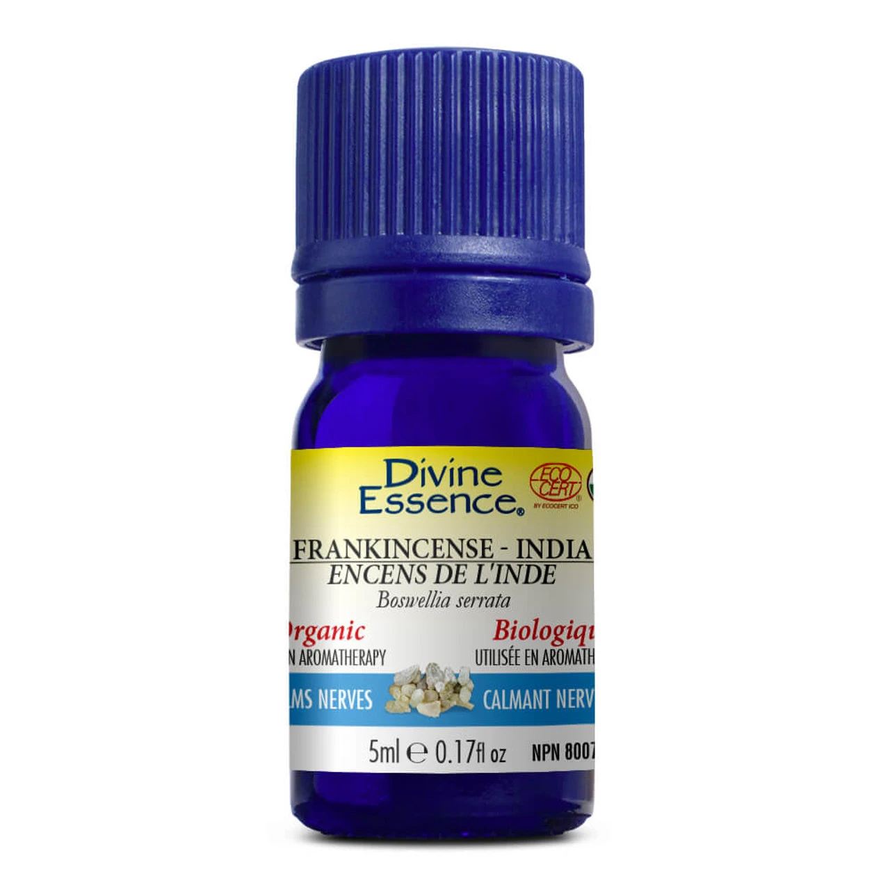 Frankincense essential oil is used in aromatherapy as nerve calming and to help relieve cold and cough symptoms.