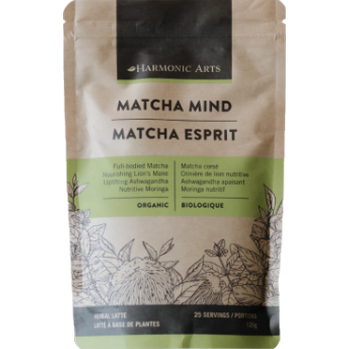 Formulated by Harmonic Arts, Matcha Mind is a Matcha green tea mixed with the medicinal properties of mushrooms.