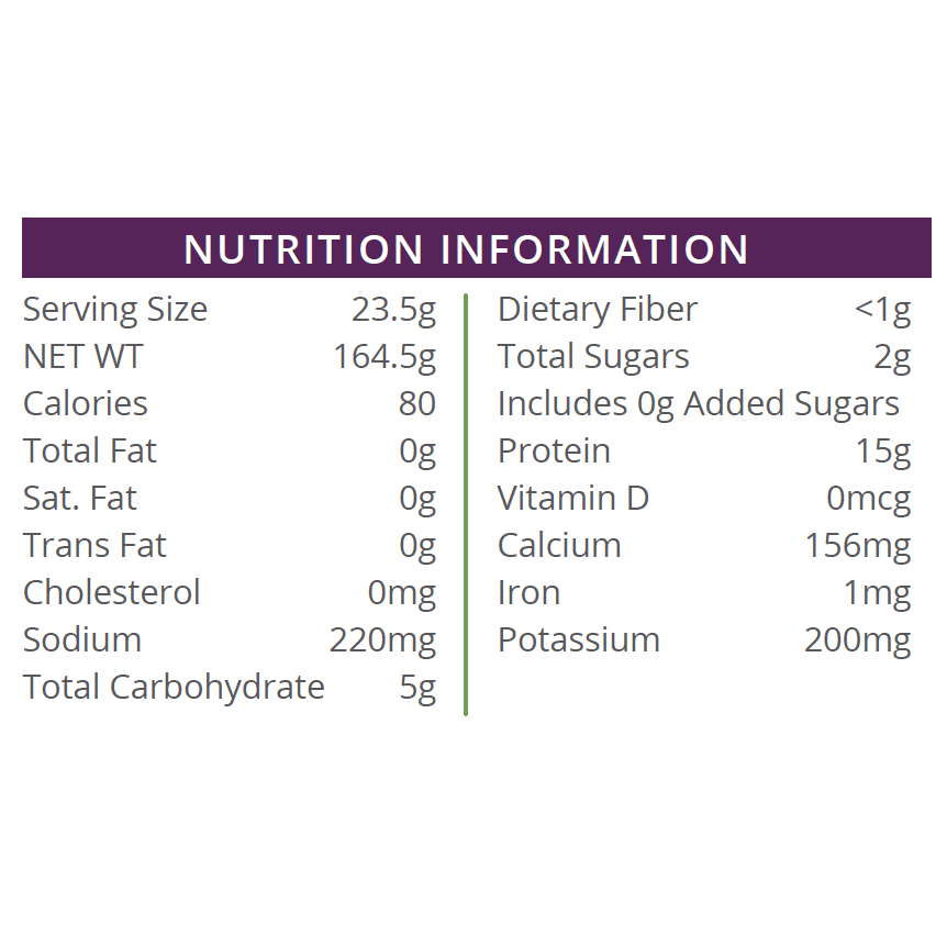 Calcium Caseinate, Hydrolyzed Gelatin, Non-Fat Dry Milk, Cocoa Powder (processed with alkali), Maltodextrin, Natural and Artificial Flavors, Salt, Titanium Dioxide, Potassium Citrate, Cinnamon, Sucralose, Soy Lecithin.