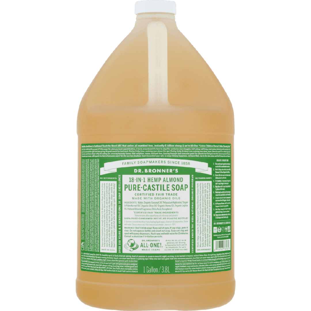 Our Almond Pure-Castile Liquid Soap is concentrated, biodegradable, versatile and effective.
