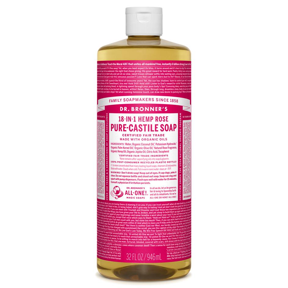 Floral and fresh, with a hint of sweetness, our Rose Pure-Castile Liquid Soap is concentrated, biodegradable, versatile and effective. Made with organic and certified fair trade ingredients. Organic hemp oil is now sourced in the U.S. following hemp legalization! Packaged in a 100% post-consumer recycled bottle. All-One!