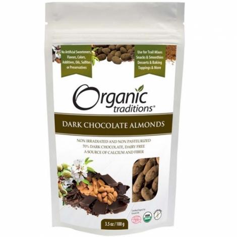 Organic Traditions Dark Chocolate Almonds make a delicious snack right out of the bag.