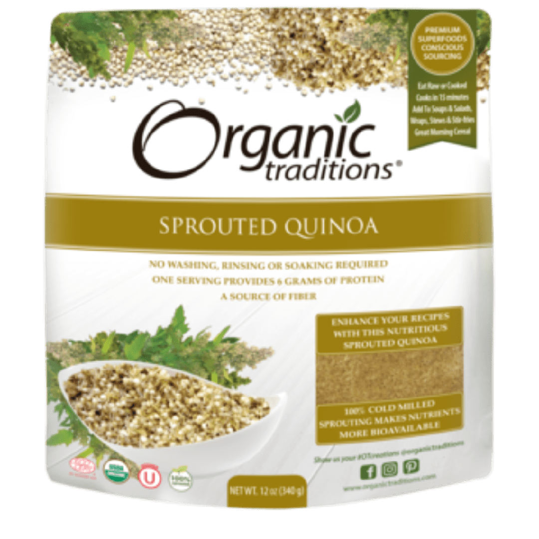 A revered crop since the Incas, Quinoa is one of natures most nourishing superfoods. Native to the Andean regions of Bolivia, Peru and Ecuador, this ancient seed is a nutrient dense, gluten-free alternative to grains. Although referred to as the mother of all grains according to the Incas, it is technically not classified as a true grain or cereal from the grass family, but is related to foods such as spinach and beets. Sprouted Quinoa is not only an incredibly nutritious superfood, it is delicious to eat and easy to digest. The sprouting process improves digestibility and allows for a greater absorption of nutrients. Enzyme inhibitors are eliminated and anti-nutritive compounds such as phytic acid are reduced. The sprouting process increases vitamins and minerals in Quinoa providing greater bio-available nutrition when compared to non-sprouted Quinoa. Low temperature air-drying ensures that the vital enzymes and nutrients stay in tact. The result is the most digestible, nourishing superfood that will keep you satisfied and strong. One 50 gram serving size provides 7 grams of protein, along with Fiber and Iron. Sprouted Quinoa is an indispensible superfood for those on a gluten-free diet and is a fast and simple way to enhance your daily diet with an extra boost of dense superfood nutrition.