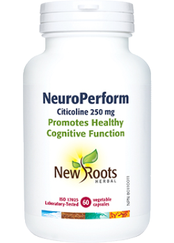 Each New Roots NeuroPerform Citicoline capsule delivers 250 mg of clinically researched citicoline for cognitive support instrumental of the aging brain with 14mg of choline.