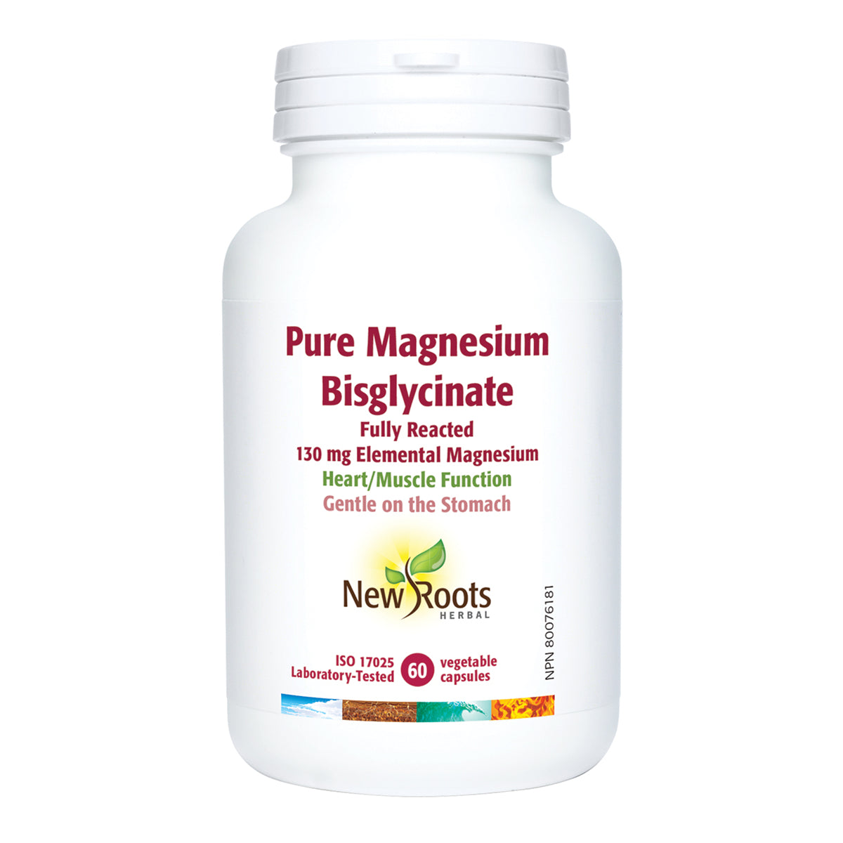 New Roots Herbal’s Pure Magnesium Bisglycinate offers a high-performance solution to meet your magnesium needs. Thanks to its chelated form (bonded to two glycine molecules), it ensures exceptional bioavailability while preventing the intestinal discomfort often associated with other forms of magnesium.