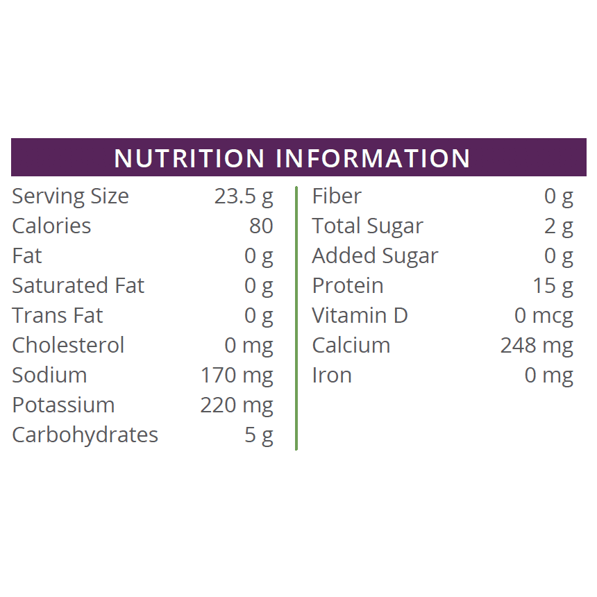 Calcium Caseinate, Hydrolyzed Gelatin, Non-Fat Milk, Natural and Artificial Flavors, Milk Protein Isolate, Creamer (Corn Syrup Solids, Coconut Oil, Sodium Caseinate [a milk derivative], Dipotassium Phosphate, Mono and Diglycerides, Silicon Dioxide), Potassium Citrate, Salt, Cellulose Gum, Tricalcium Phosphate, Sucralose, Titanium Dioxide, Soy Lecithin.