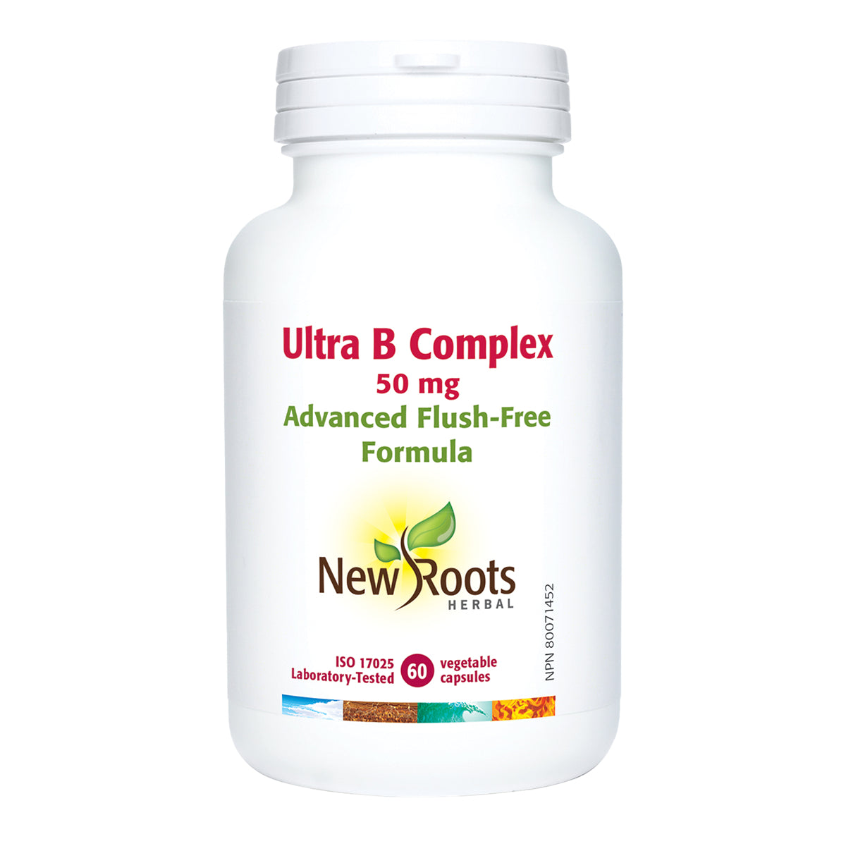 The Ultra B Complex by New Roots Herbal is an advanced formula designed for maximum bioavailability. Unlike standard B-complexes, this version utilizes coenzymated (active) forms and a special no-flush niacin, ensuring rapid and effective action without the uncomfortable skin tingling often associated with high-dose B3.
