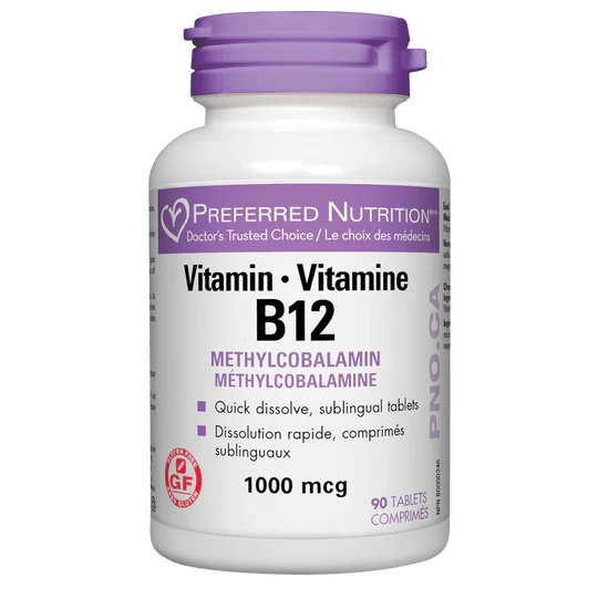 Preferred Nutrition's Vitamin B12 (methylcobalamin) increases energy and helps maintain a healthy nervous system.