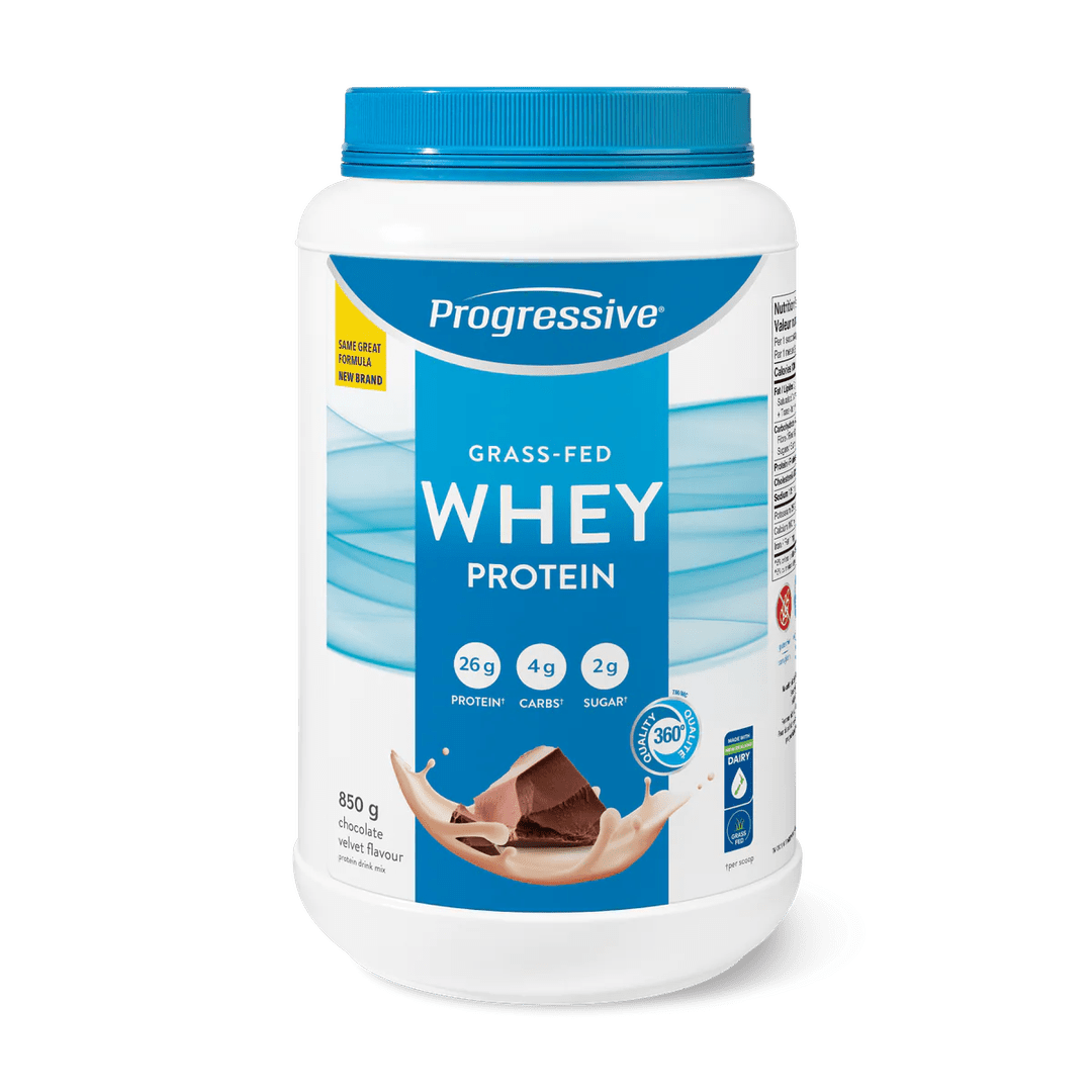 Progressive Grass Fed Whey Protein features a gently processed, low temperature filtered whey protein concentrate imported from New Zealand. Each delicious scoop delivers 27g* of protein with only 2g of fat, 2g of sugar, and zero artificial flavours, colours, or sweeteners.