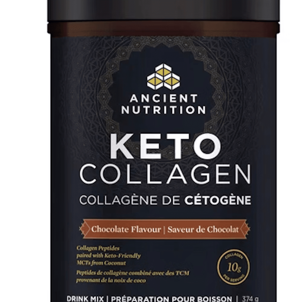 Hydrolyzed Bovine Hide Collagen Peptides, Medium Chain Triglycerides (coconut),organic chocolate powder, Natural hazelnut flavour, natural chocolate flavour, other natural flavours, stevia leaf extract.