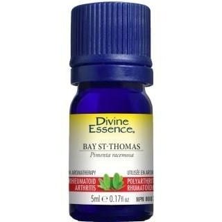Bay St-Thomas essential oil is used in aromatherapy to help relieve joint and muscle pain associated with sprains, strains and rheumatoid arthritis and to help relieve cold and cough symptoms.
