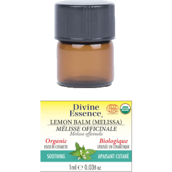 Lemon balm, part of the mint family, has been cultivated around the Mediterranean coast for over 2,000 years. Intended for topical use by adults, mix 1 drop of Divine Essence 100% organic Lemon Balm essential oil in ½ teaspoon (2.5ml) of vegetable oil.