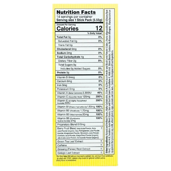 Made with green tea extract, ginseng, and caffeine, as well as real cranberry, acai berry, and strawberry.