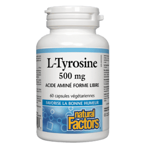 L-tyrosine is an amino acid which helps restore dopamine and norepinephrine, two neurotransmitters important for maintaining mood, and which become depleted by stress, including prolonged work or exercise, exposure to cold, and sleep deprivation. Supplementing with Natural Factors L-Tyrosine helps the body manage stress, and improve mood, energy levels, and alertness.