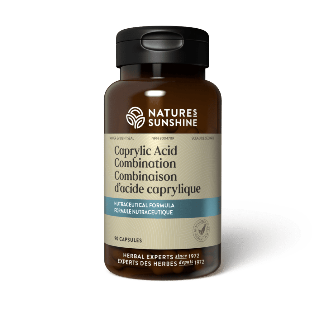 Medicinal Ingredients: Each capsule contains caprylic acid (octanoic acid) 300 mg; Inula helenium (elecampane) root 36 mg; Juglans nigra (black walnut) fruit hull 32 mg and Rubus idaeus (red raspberry) leaf 32 mg.