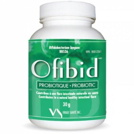 Ofibid is produced with only Bifidobacterium longum BB536. This strain colonizes the low part of the digestive system. The fixation is preferentially done in the large intestine (anaerobic system = no oxygen). Ofibid helps relieve unease associated with constipation, gas and bloating while favoring regularity and gastrointestinal heal.
