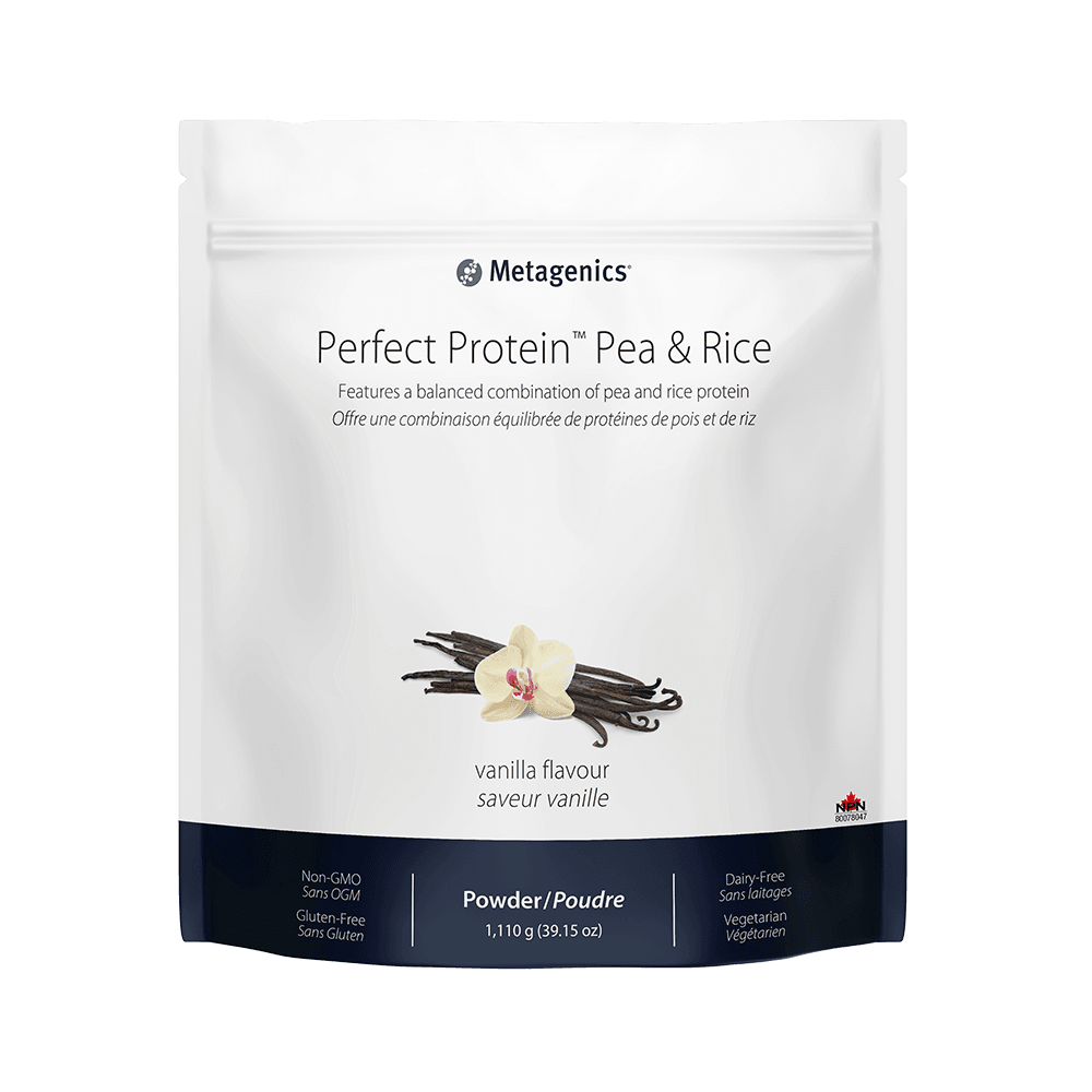 Recommended Dose: Adults blend, shake, or briskly stir 2 scoops (37 grams) of Perfect Protein Pea & Rice in 237 mL (8 fl. oz.) of chilled water daily or as directed by your healthcare practitioner.