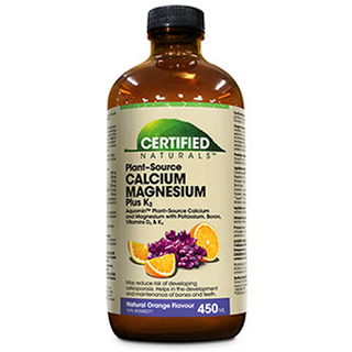 Certified Naturals Calcium Magnesium liquid formula contains the unique plant-source calcium source known as Aquamin.