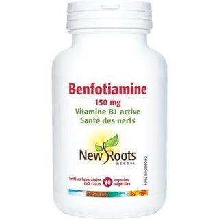 Benfotiamine forme naturelle de la vitamine B1 La benfotiamine est un nutriment essentiel pour les nerfs. Il est également connu sous le nom de vitamine B1. La benfotiamine est une forme de vitamine B1 qui est facilement absorbée par le corps. La vitamine B1 est importante pour la santé des nerfs et du cerveau. La benfotiamine, forme biologiquement active de la thiamine (vitamine B1), est un nutriment essentiel pour les nerfs des personnes atteintes de polyneuropathie. La benfotiamine est la forme naturelle de la vitamine B1, reconnue pour avoir une biodisponibilité jusqu’à cinq fois supérieure à celle de la vitamine B1 ordinaire. Le bienfait thérapeutique de la benfotiamine réside dans sa capacité à bloquer un processus nocif appelé glycation des protéines, qui est causé par une exposition prolongée à une glycémie élevée. Les sous-produits de ce processus destructeur, les produits finaux de glycation avancée (AGE), peuvent entraîner des lésions nerveuses liées au diabète, appelées polyneuropathie. En plus de soutenir la fonction nerveuse des personnes atteintes de polyneuropathie, la benfotiamine aide à la production énergétique et au métabolisme des nutriments. Benfotiamine de New Roots Herbal offre une posologie thérapeutique validée scientifiquement, de 150 mg par capsule végétale. DIRECTIVES D’UTILISATION Adultes : Pour soutenir une fonction nerveuse saine chez les personnes atteintes de polyneuropathie : Prendre 1 capsule trois fois par jour ou tel qu’indiqué par votre praticien de soins de santé. Pour aider à la production d’énergie et à maintenir la capacité de l’organisme à métaboliser les nutriments : Prendre 1 capsule par jour ou tel qu’indiqué par votre praticien de soins de santé. Consulter un praticien de soins de santé pour tout usage au-delà de 6 mois. AVERTISSEMENT Ne contient pas :Gluten, soja, blé, maïs, œufs, produits laitiers, levure, agrumes, agents de conservation, arôme ou colorant artificiels, amidon, ou sucre. Précautions et avertissements : Consulter un praticien de soins de santé si les symptômes persistent ou s’aggravent. Ne pas utiliser si le sceau est brisé. Garder hors de portée des enfants. DIRECTIVES D’UTILISATION Adultes : Pour soutenir une fonction nerveuse saine chez les personnes atteintes de polyneuropathie : Prendre 1 capsule trois fois par jour ou tel qu’indiqué par votre praticien de soins de santé. Pour aider à la production d’énergie et à maintenir la capacité de l’organisme à métaboliser les nutriments : Prendre 1 capsule par jour ou tel qu’indiqué par votre praticien de soins de santé. Consulter un praticien de soins de santé pour tout usage au-delà de 6 mois. INGRÉDIENTS Chaque capsule végétale contient : Benfotiamine 150 mg Fournissant : Thiamine (vitamine B1) 85,5 mg Autres ingrédients : Cellulose microcristalline, stéarate de magnésium végétal, et dioxyde de silicium dans une capsule végétale sans OGM composée de gomme de glucides végétale et d’eau purifiée.