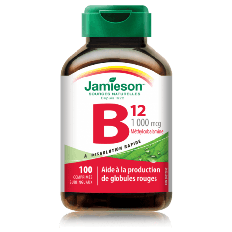 Jamieson Vitamin B12 1,000 mcg Fast Dissolving Sublingual Tablets use the methylcobalamin rather than the cyanocobalamin form of Vitamin B12. The methylcobalamin form of Vitamin B12 is very important in the prevention of neurological disorders, as it prevents nerve damage by maintaining myelin, the fatty sheaths that cover and protect nerve endings.